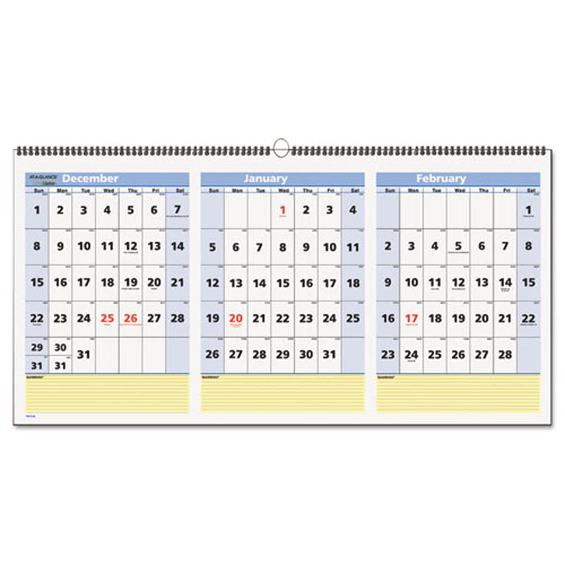 Quicknotes 3 Month Horizontal Wall Calendar | Ultimate Office